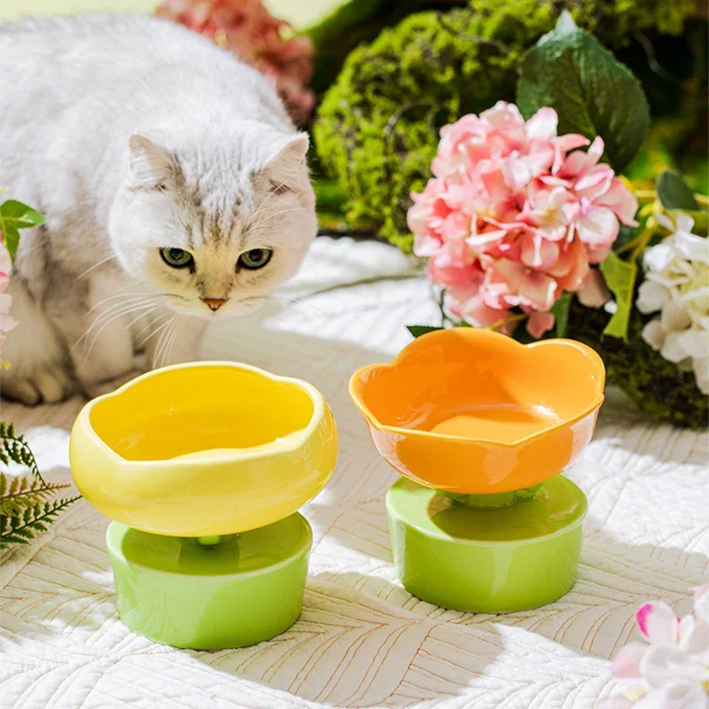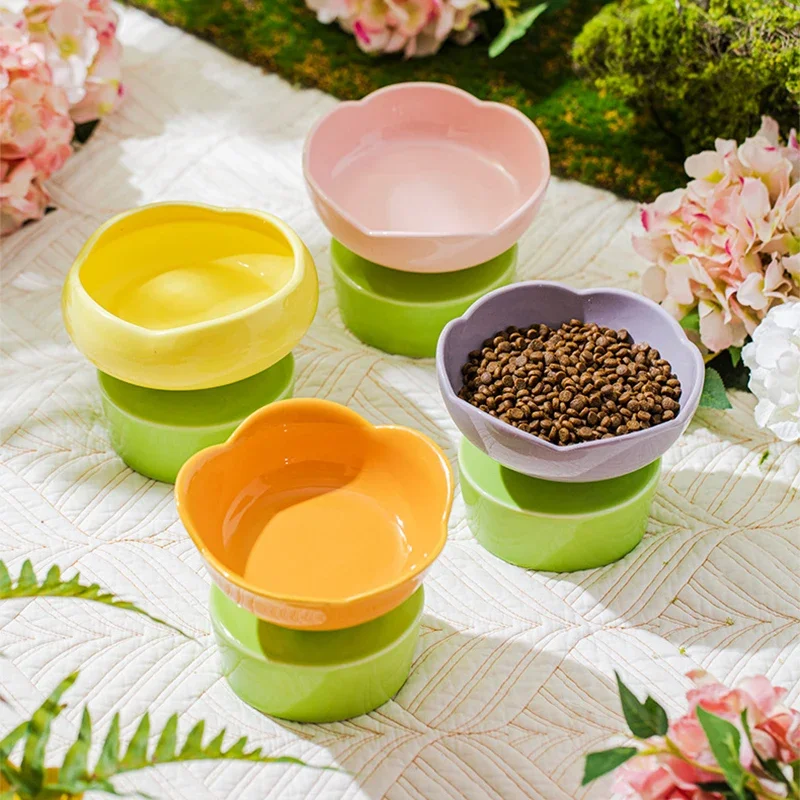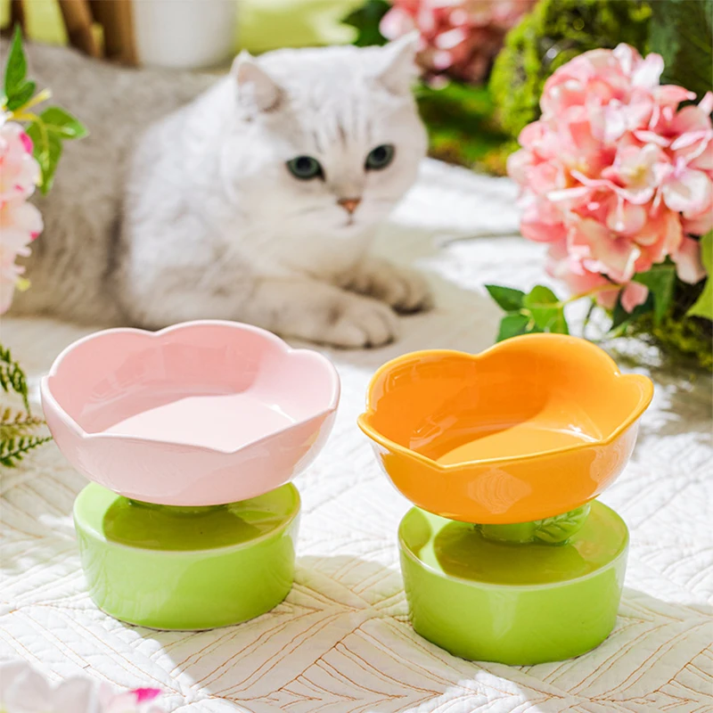 2023 Cute Pet Bowl Creative Flower-Shaped Bowl Cat Food Ceramics Water Bowl Pet Accessories For Cats Pet Products