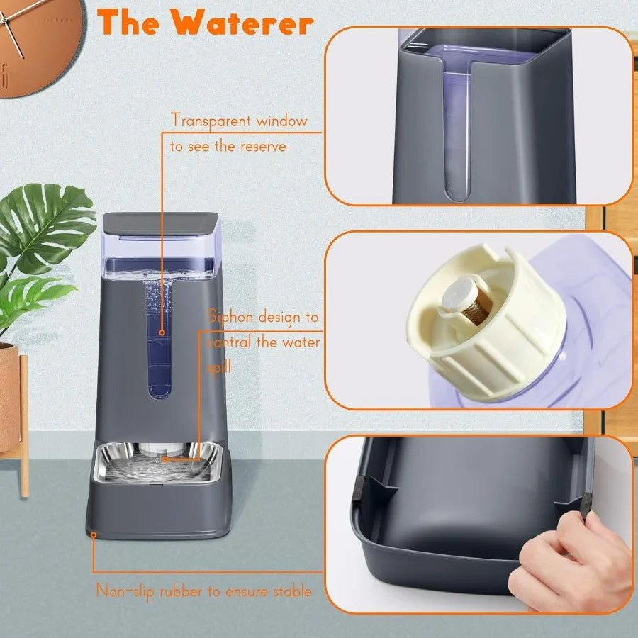 Automatic Refills Food And Water With Gravity System: The gravity automatic dog feeder is design with self-gravity feeding, no electricity required. There are four non-slip rubber feet on the bottom of the cat feeder to ensure safe placement and suitable for both indoor and outdoor use. The automatic cat feeder is the best choice if you need to go to work or travel, do not need to worry about your pets being hungry or thirsty