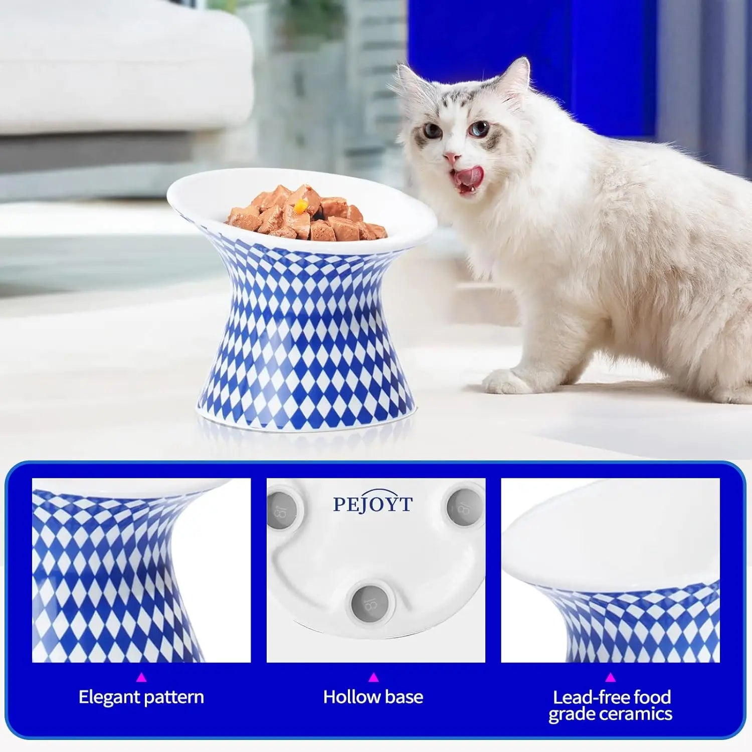Elevated Cat Ceramic Bowls Extra Wide Raised Cat Food and Water Tilted Bowls Anti Vomiting Stress Free Cat Feeder Bowls